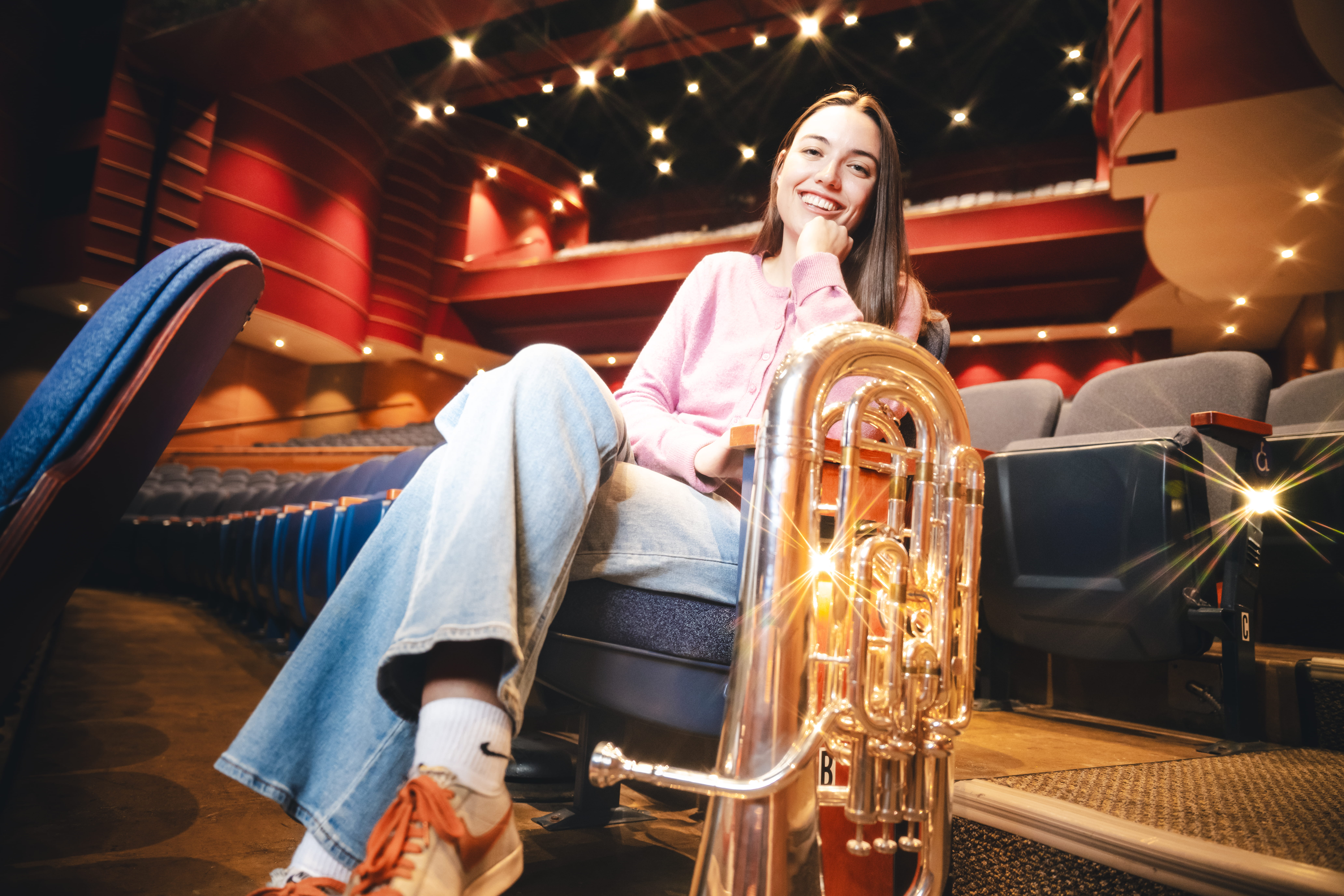 Capturing the magic behind the scenes: A skilled student lighting designer at work in a technical rehearsal for Open Up! — a devised student variety showcase.
